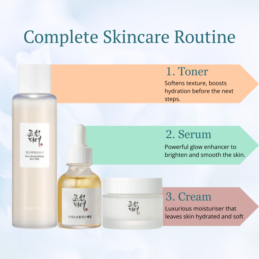 1. Beauty of Joseon Glow Replenishing Rice Milk Toner (150ml): Start with this nourishing toner, formulated with rice milk to deeply hydrate and soothe. The toner softens skin texture, boosts hydration levels, and prepares it perfectly for the next steps in your routine.