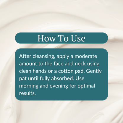 After cleansing, apply a moderate amount to the face and neck using clean hands or a cotton pad. Gently pat until fully absorbed. Use morning and evening for optimal results.
