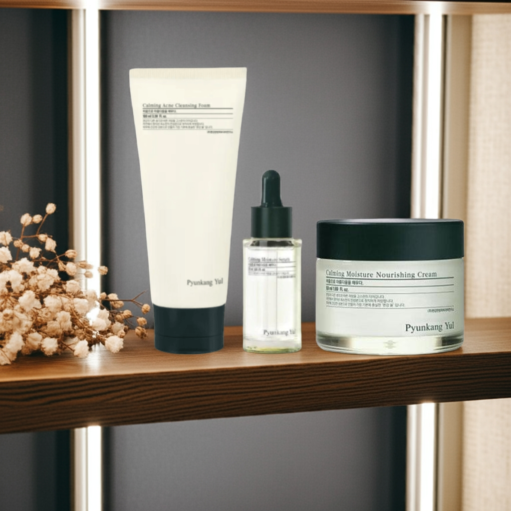Rebalance and restore harmony to troubled or easily irritated skin with this dermatologist-developed three-step routine from Pyunkang Yul’s Calming range. Specially formulated for sensitive and acne-prone skin, this set offers a minimalist, effective approach to soothing inflammation, maintaining hydration, and reinforcing the skin barrier.