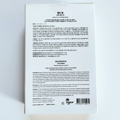 Soothe and balance your skin with the Torriden Balanceful Cica Sheet Mask Pack. Infused with powerful Centella Asiatica extract, this mask calms irritation, reduces redness, and strengthens the skin barrier, promoting a more resilient complexion. The addition of hyaluronic acid provides deep hydration, leaving your skin feeling soft, supple, and refreshed. Each sheet is crafted from a lightweight, breathable material that adheres comfortably to the face, ensuring optimal absorption of the nourishing essence.